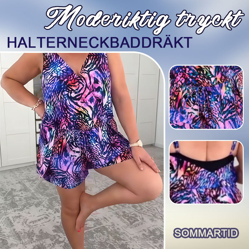 🌊Moderiktig tryckt halterneckbaddräkt💃
